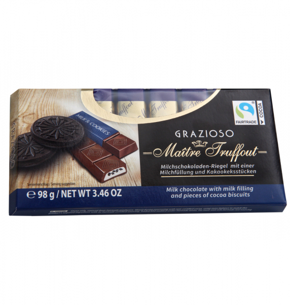 GRAZIOSO CIOCOLATA DE LAPTE CU CREMA DE LAPTE SI BUCATI DE BISCUITI DE CACAO 98 GR